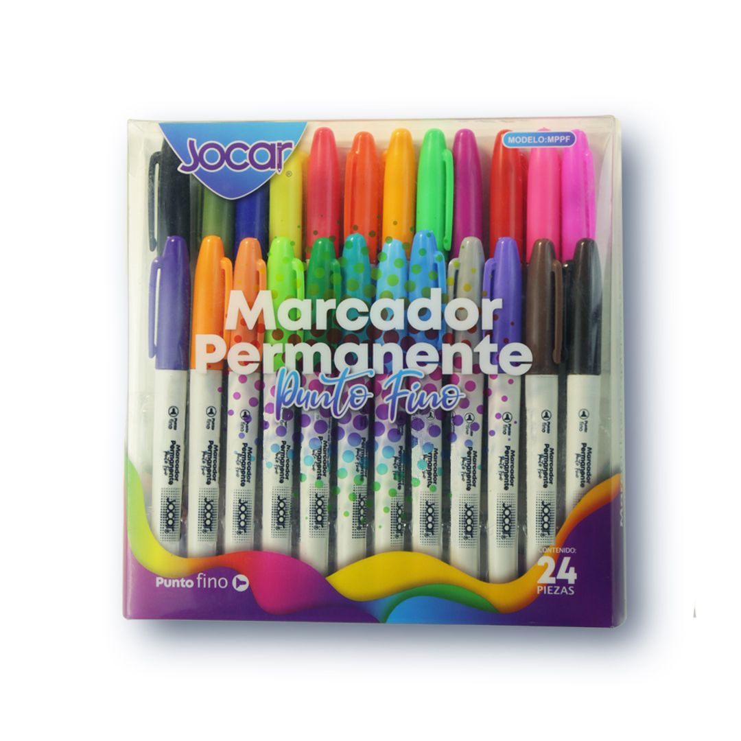 Marcadores permanentes punto fino en caja de PVC con 24 piezas